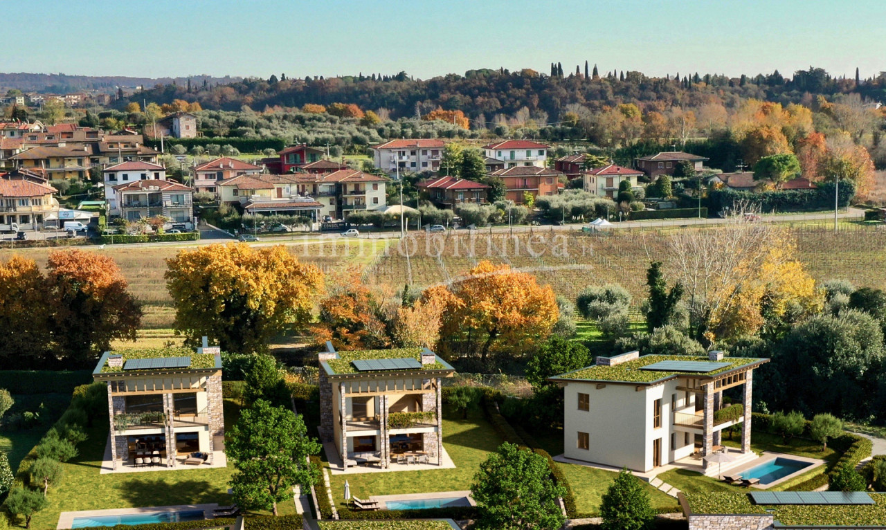 LAZISE - In einem exklusiven reservierten Bereich und in einem Grün Area mit Blick auf den See, bieten wir einen Neubau von sieben Einzelvillen mit Swimmingpool. Die Villen, die mit den modernsten Bautechnologien gebaut wurden, werden mit einer antiseismischen Holzstruktur der Klasse A4 gebaut. Lösung auf zwei Ebenen mit der Möglichkeit des vierten Schlafzimmers oder einer Wohnfläche von 50 qm, Veranda im Gartengeschoss und großer Panoramaterrasse im Obergeschoss. Technologische Systeme, große Garagen im Untergeschoss, Ruhe, Panoramablick. Zu sehen!