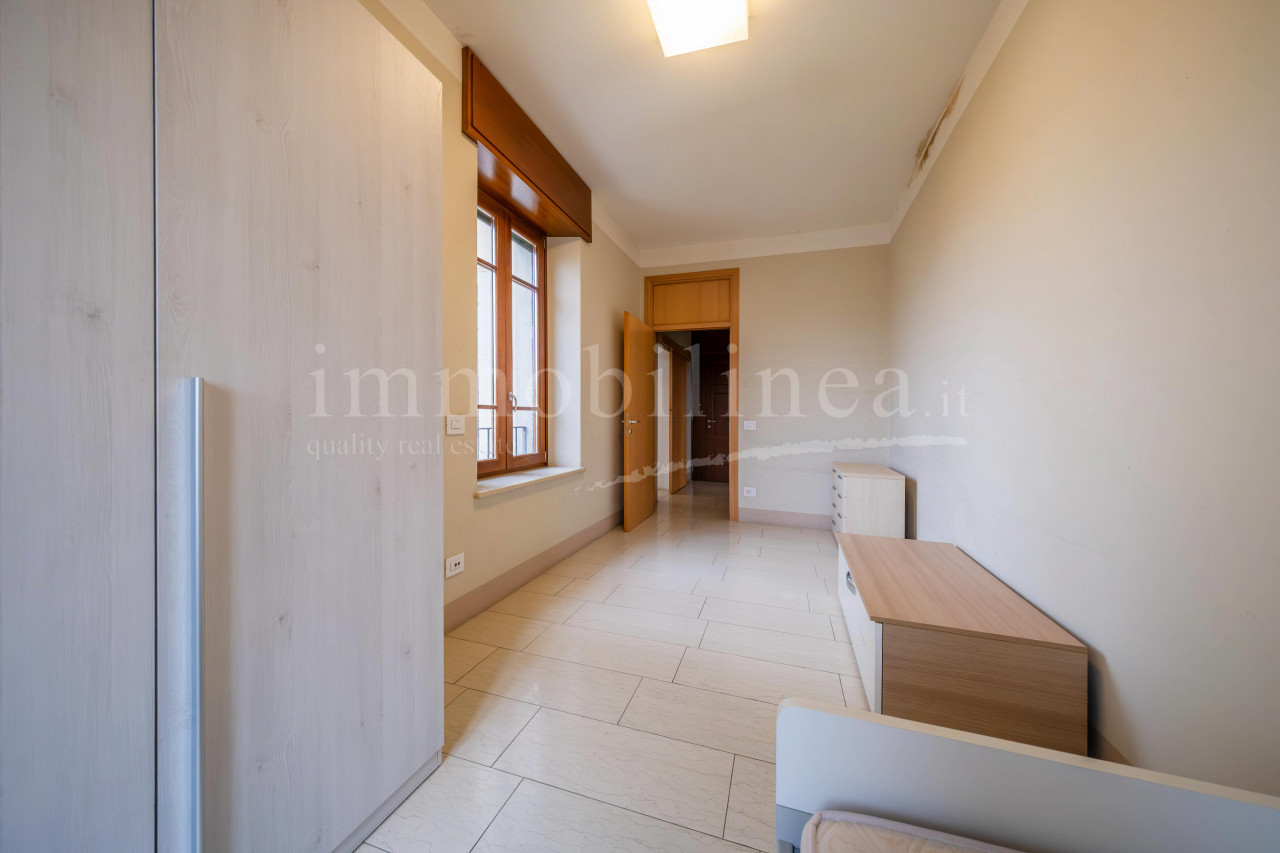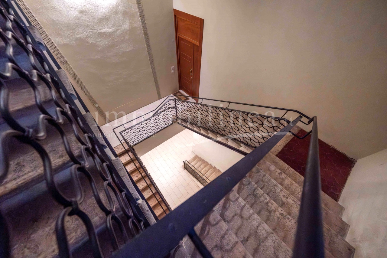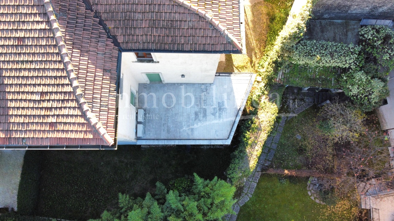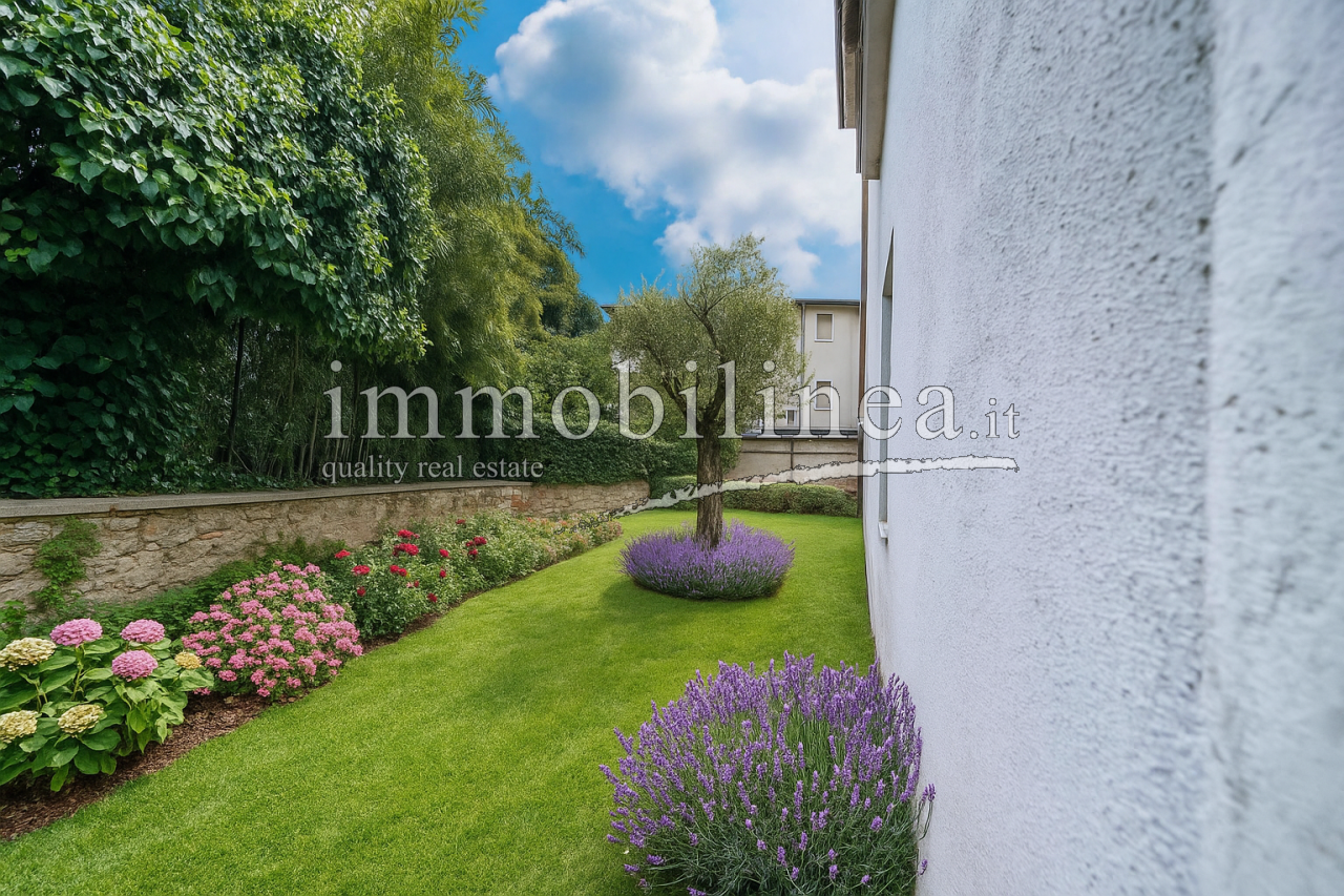 Der Hauptzugang von der Via Fratelli Lavanda führt zum Eingangsatrium mit Keller und Garten auf der Rückseite, während das große Treppenhaus, in dem ein Lift installiert werden kann, die 4 großen Vierzimmerwohnungen im ersten und zweiten Stock mit Terrassen und Balkonen mit Blick auf den See begleitet.