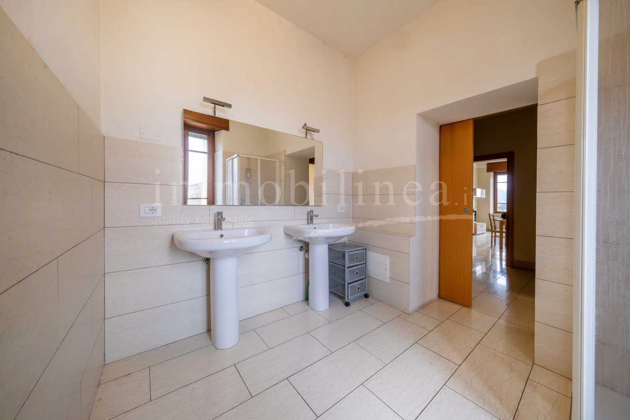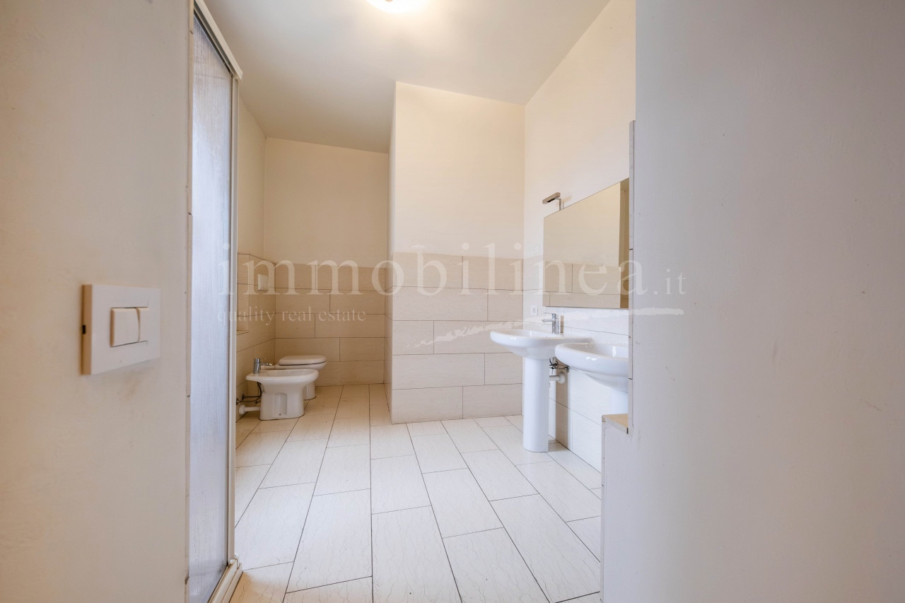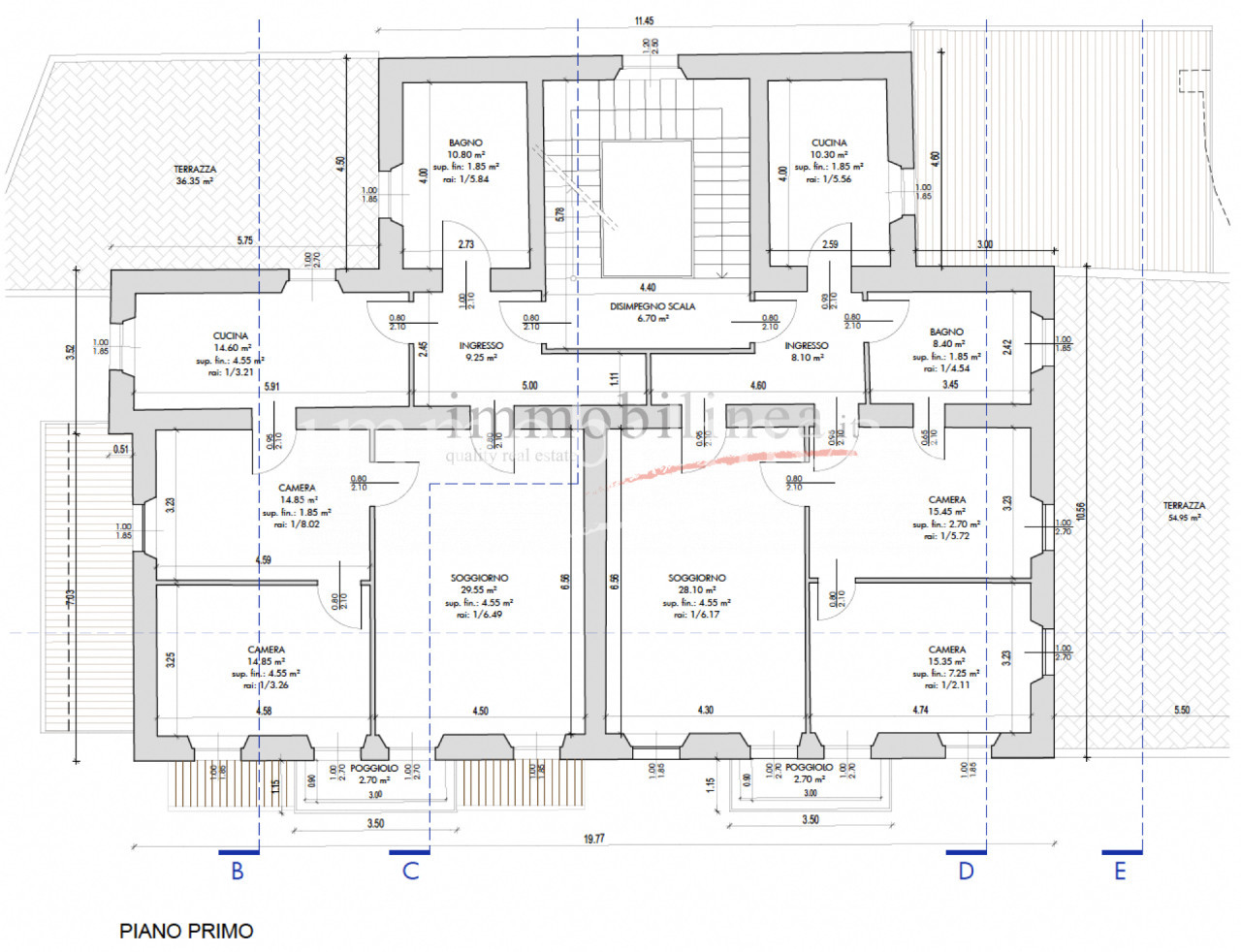 Der Hauptzugang von der Via Fratelli Lavanda führt zum Eingangsatrium mit Keller und Garten auf der Rückseite, während das große Treppenhaus, in dem ein Lift installiert werden kann, die 4 großen Vierzimmerwohnungen im ersten und zweiten Stock mit Terrassen und Balkonen mit Blick auf den See begleitet.
