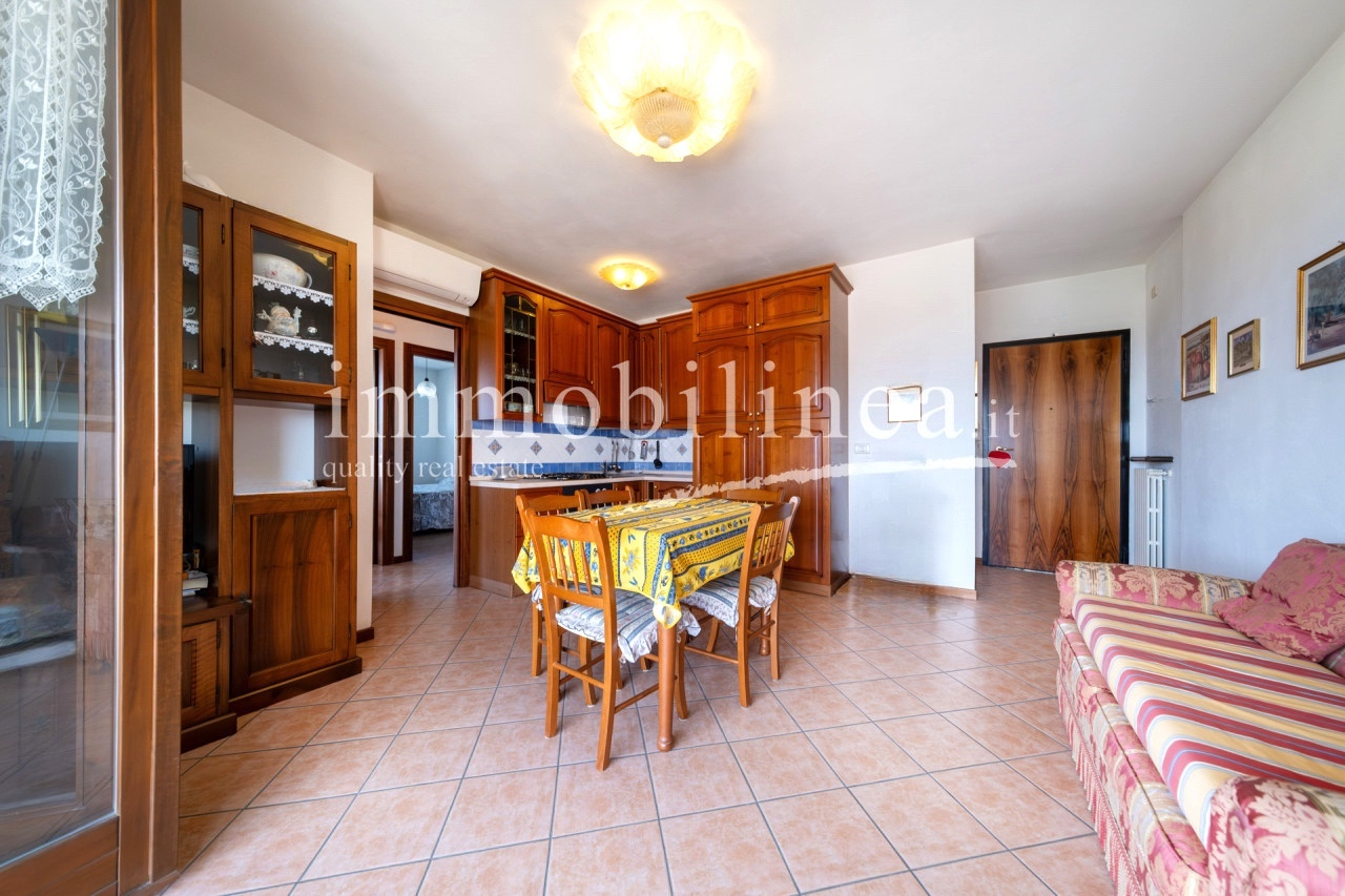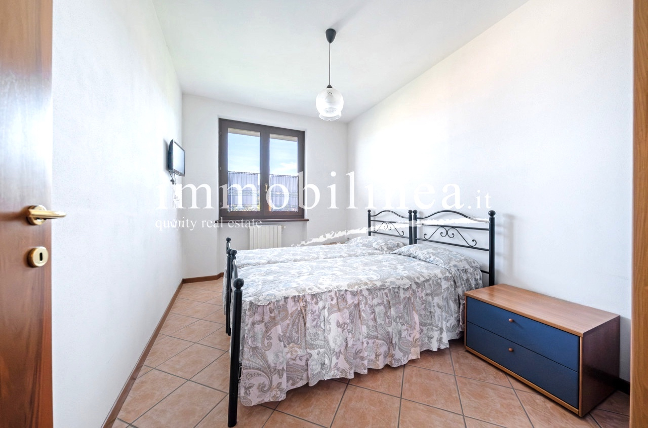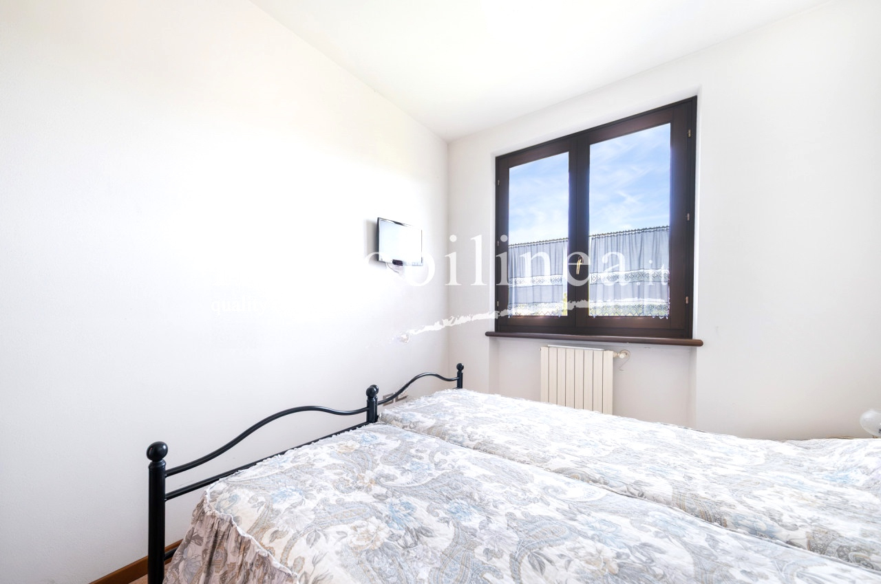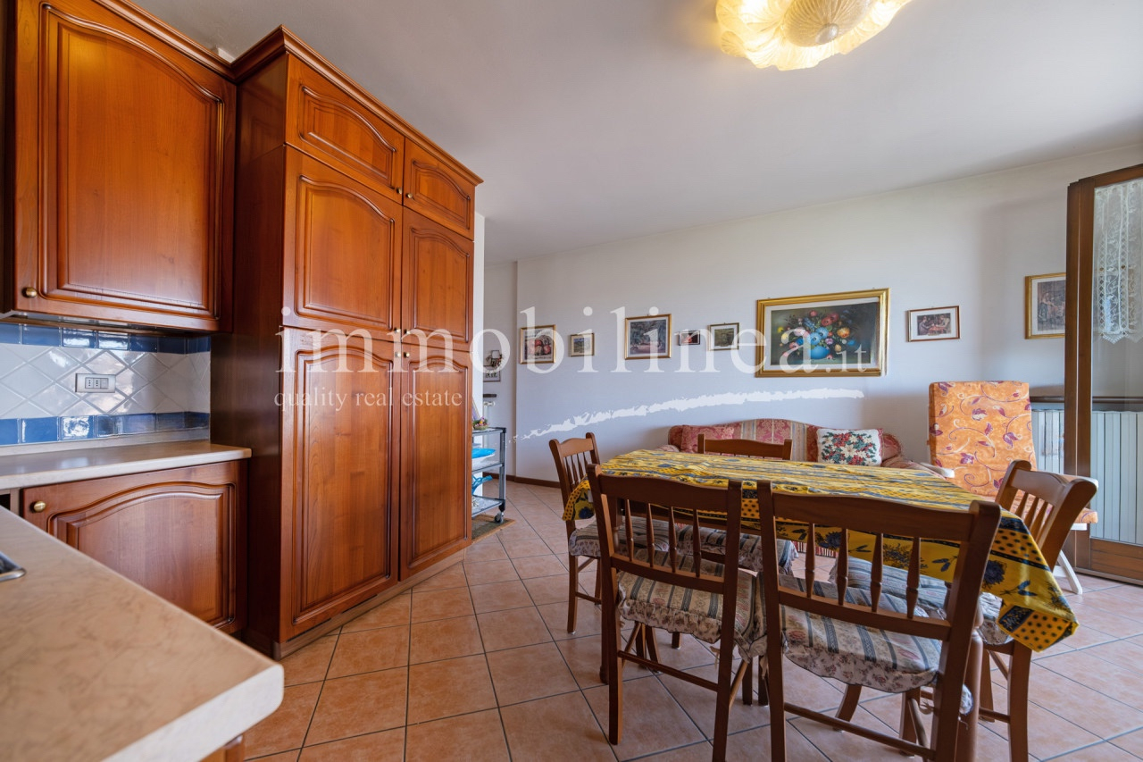 Entdecken Sie diese charmante Drei-Zimmer-Wohnung im Herzen von Bardolino, einem der beliebtesten Orte am Gardasee. Diese Gelegenheit befindet sich im zweiten und letzten Stock eines eleganten Wohnhauses aus den späten 90ern, das Zugang zu wunderbaren Gemeinschaftsbereichen wie einem Pool und weitläufigen Grünflächen bietet. Die Wohnung besteht aus einem gemütlichen Wohnzimmer mit Küchenzeile, zwei Schlafzimmern: dem Hauptschlafzimmer mit Doppelbett und einem zweiten Schlafzimmer mit zwei Betten, perfekt für Gäste oder Familienmitglieder. Das Fensterbad fügt der Einheit Praktikabilität hinzu, während der Flur über eine Klapptreppe Zugang zum Dachboden bietet – ein nützliches Extra zur Lagerung. Entspannen Sie auf der überdachten Terrasse mit vollem Seeblick oder genießen Sie die Momente im Freien vom privaten Balkon; beide Optionen bieten atemberaubende Ausblicke sowohl tagsüber als auch bei Sonnenuntergang. Die Unterkunft wird durch einen Aufzug bedient, der bequem alle Etagen vom Keller bis zur Wohnung selbst verbindet. Auch enthalten sind eine praktische Garage und ein eigener Kellerraum für zusätzlichen Stauraum und Komfort im Alltag. Nur 500 Meter vom historischen Zentrum entfernt haben Sie einfachen Zugang zu den besten Restaurants, typischen Geschäften und den herrlichen Spaziergängen entlang des Seeufers. Kontaktieren Sie noch heute unsere Immobilienagentur für weitere Informationen oder um einen Termin zu vereinbaren; wir freuen uns darauf, Ihnen beim Finden Ihres neuen Zuhauses behilflich zu sein!