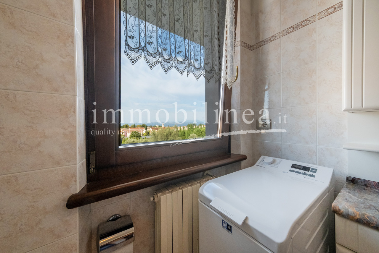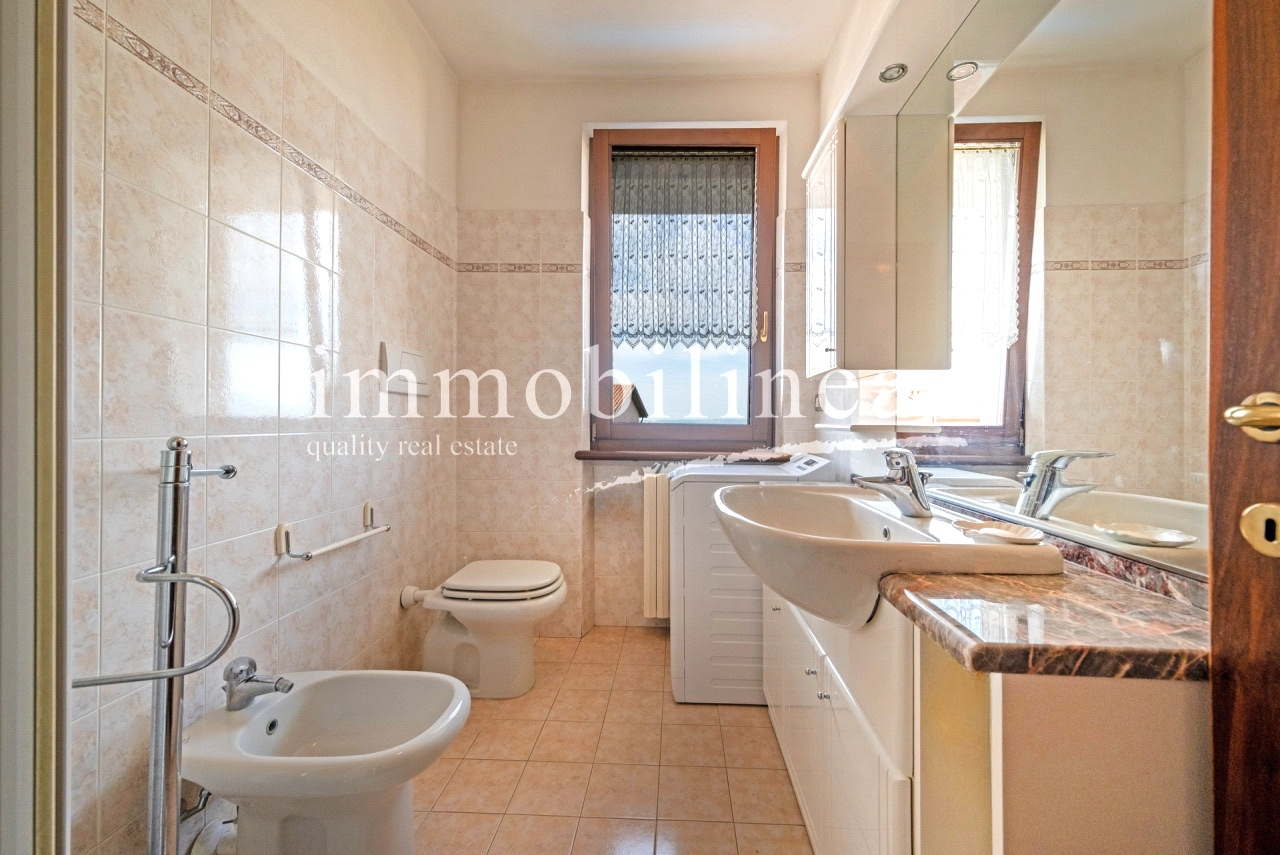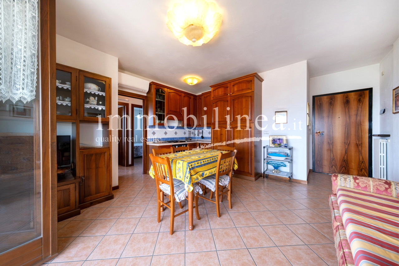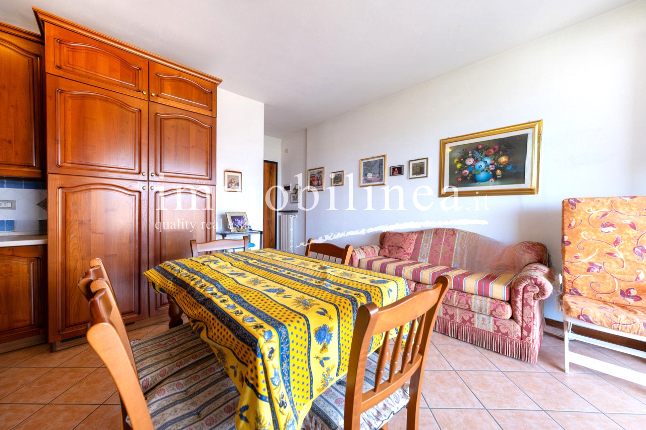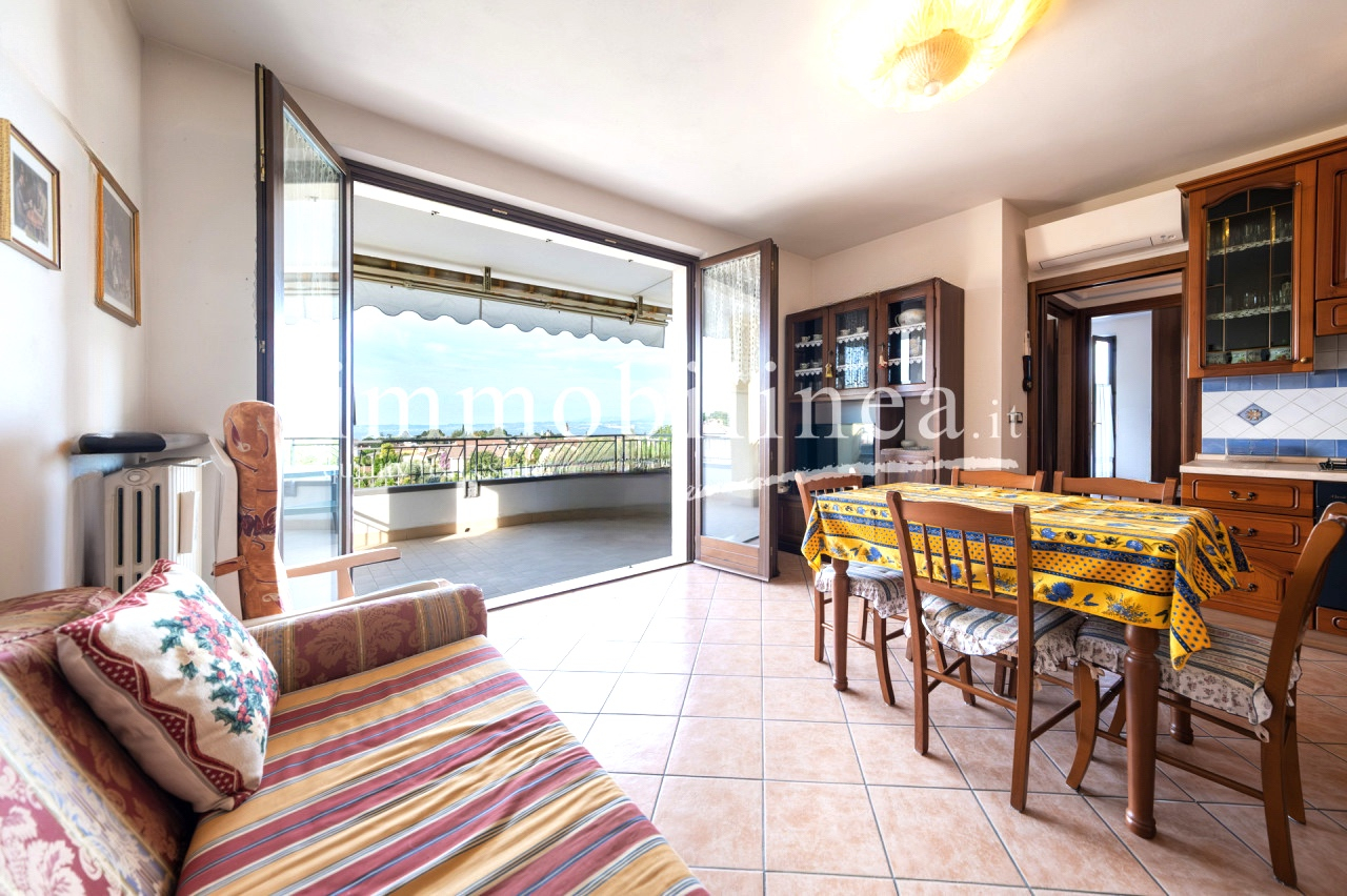 Entdecken Sie diese charmante Drei-Zimmer-Wohnung im Herzen von Bardolino, einem der beliebtesten Orte am Gardasee. Diese Gelegenheit befindet sich im zweiten und letzten Stock eines eleganten Wohnhauses aus den späten 90ern, das Zugang zu wunderbaren Gemeinschaftsbereichen wie einem Pool und weitläufigen Grünflächen bietet. Die Wohnung besteht aus einem gemütlichen Wohnzimmer mit Küchenzeile, zwei Schlafzimmern: dem Hauptschlafzimmer mit Doppelbett und einem zweiten Schlafzimmer mit zwei Betten, perfekt für Gäste oder Familienmitglieder. Das Fensterbad fügt der Einheit Praktikabilität hinzu, während der Flur über eine Klapptreppe Zugang zum Dachboden bietet – ein nützliches Extra zur Lagerung. Entspannen Sie auf der überdachten Terrasse mit vollem Seeblick oder genießen Sie die Momente im Freien vom privaten Balkon; beide Optionen bieten atemberaubende Ausblicke sowohl tagsüber als auch bei Sonnenuntergang. Die Unterkunft wird durch einen Aufzug bedient, der bequem alle Etagen vom Keller bis zur Wohnung selbst verbindet. Auch enthalten sind eine praktische Garage und ein eigener Kellerraum für zusätzlichen Stauraum und Komfort im Alltag. Nur 500 Meter vom historischen Zentrum entfernt haben Sie einfachen Zugang zu den besten Restaurants, typischen Geschäften und den herrlichen Spaziergängen entlang des Seeufers. Kontaktieren Sie noch heute unsere Immobilienagentur für weitere Informationen oder um einen Termin zu vereinbaren; wir freuen uns darauf, Ihnen beim Finden Ihres neuen Zuhauses behilflich zu sein!
