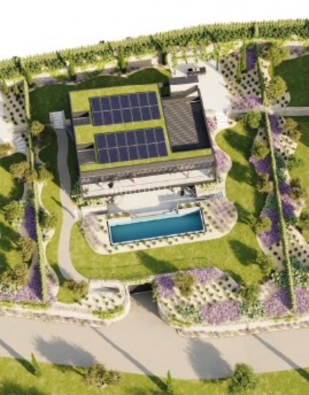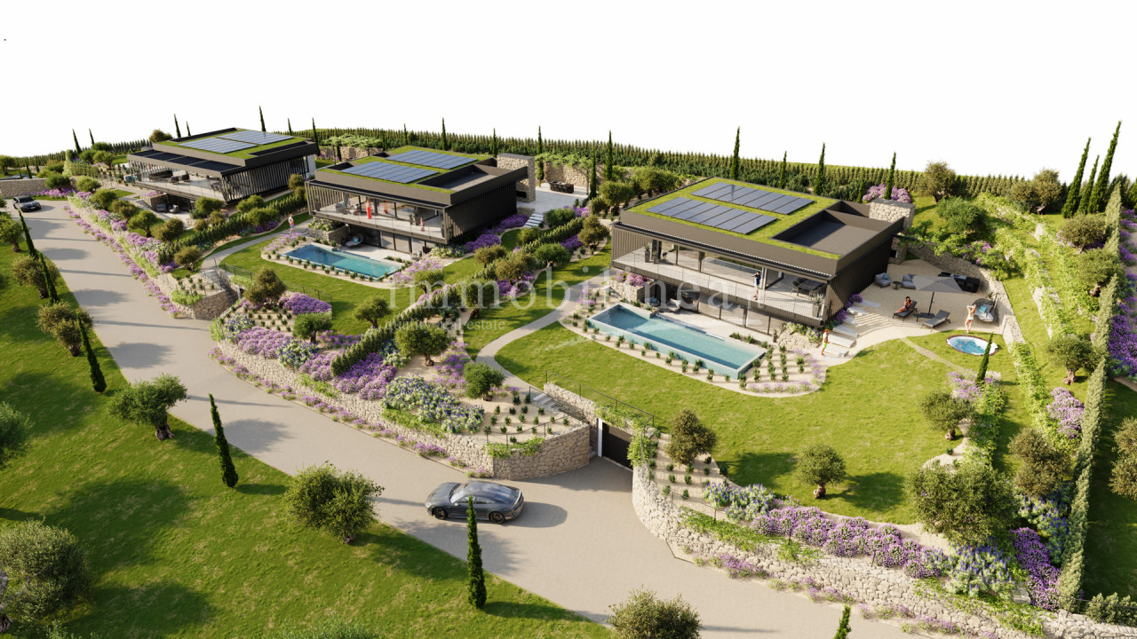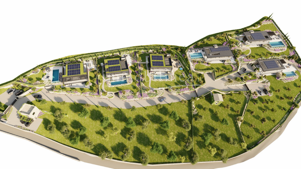 Die Villen sind von liebevoll gestalteten privaten Gärten umgeben, bereichert durch mediterrane Pflanzen und saisonale Blüten. Die Außenbereiche umfassen überdachte Terrassen, ideal für Mahlzeiten im Freien sowie private Pools zum Entspannen in maximaler Privatsphäre. Die Gründächer integrieren Photovoltaik-Panels für hohe Energieeffizienz.