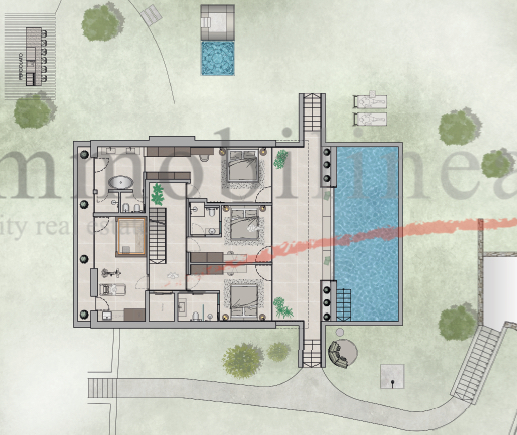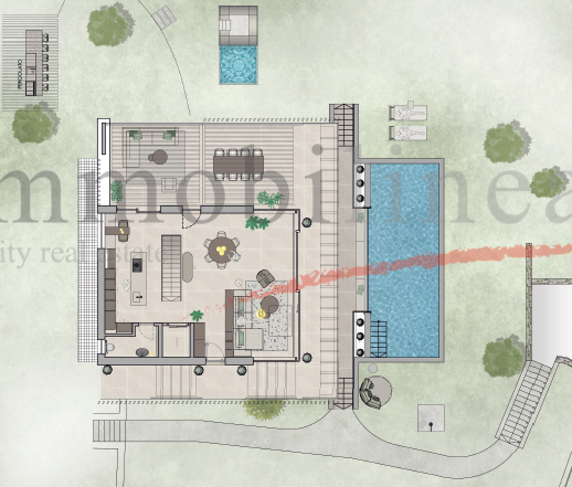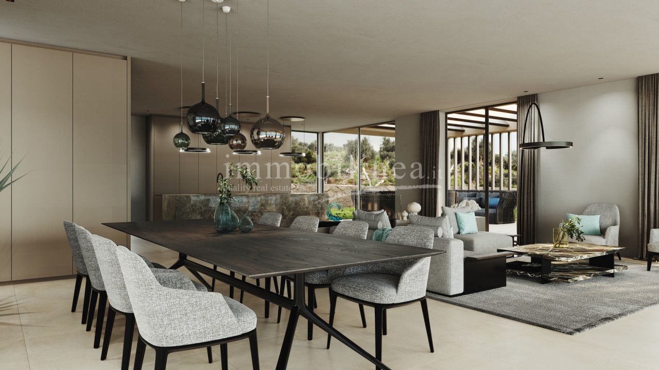 Der Zugang zur Residenz erfolgt über exklusive Wege, begrenzt von charakteristischen Mauern aus lokalem Stein; der Eingang ist nur für Bewohner reserviert und gewährleistet absolute Sicherheit und Ruhe. Der private Parkplatz bietet bequem Platz für hochwertige Autos.