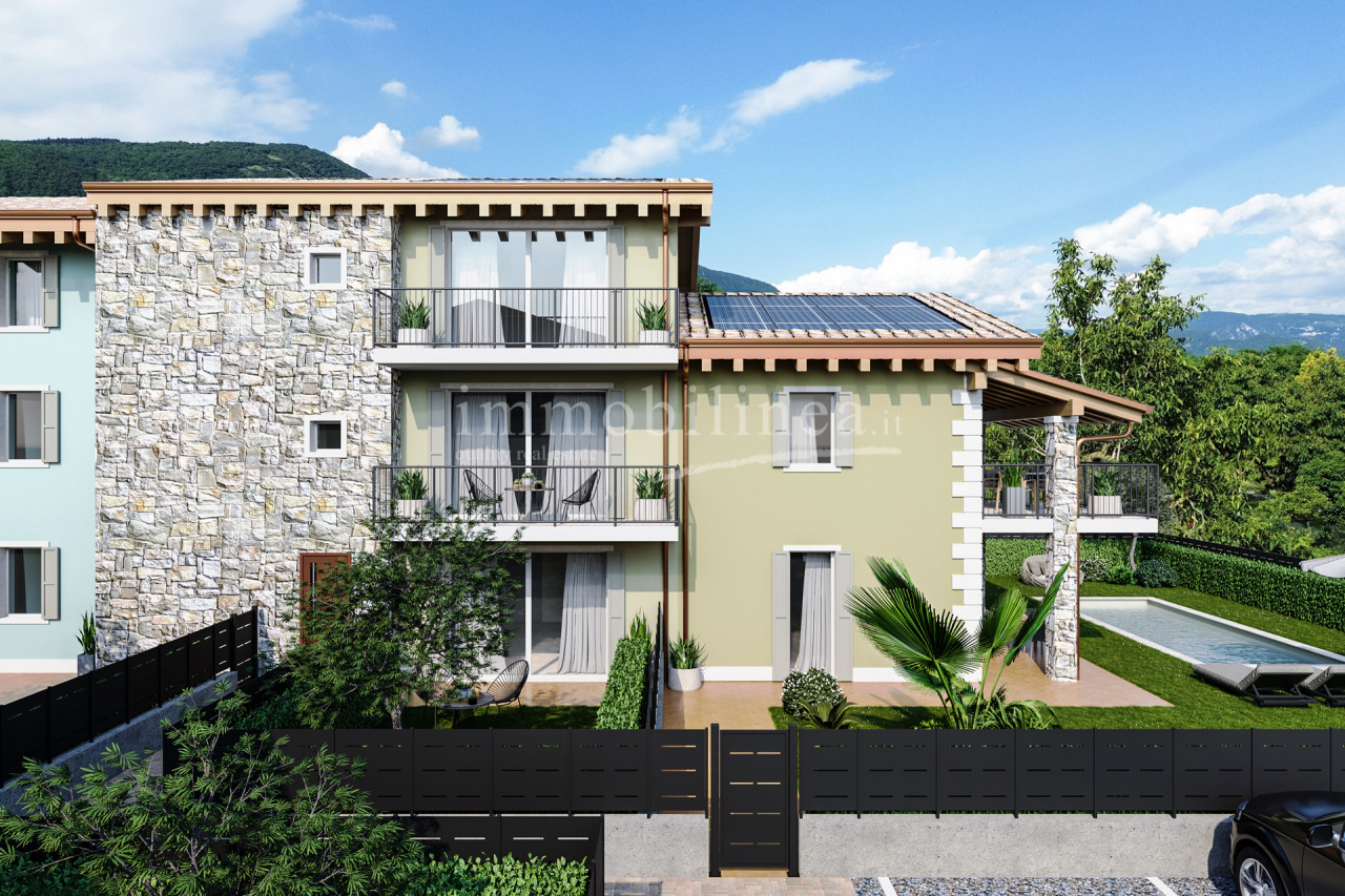 Wir bieten zum Verkauf ein wunderschönes neu gebautes Reihenhaus in der renommierten Gegend von Albarè, in der Gemeinde Costermano am Garda. Die Immobilie befindet sich innerhalb eines exklusiven Wohnkomplexes, umgeben von Grün und den moränischen Hügeln des Gardasees.