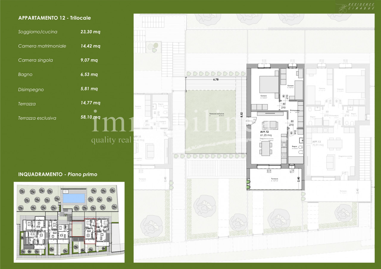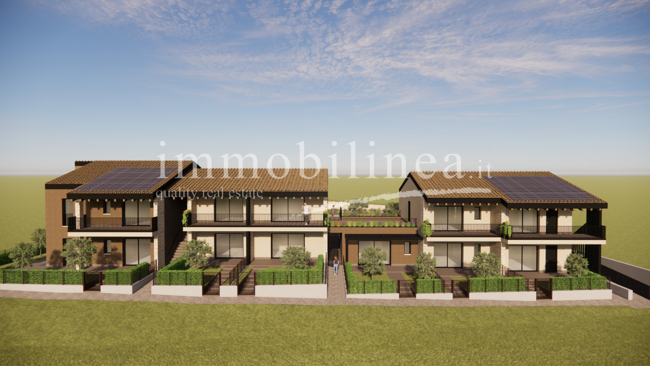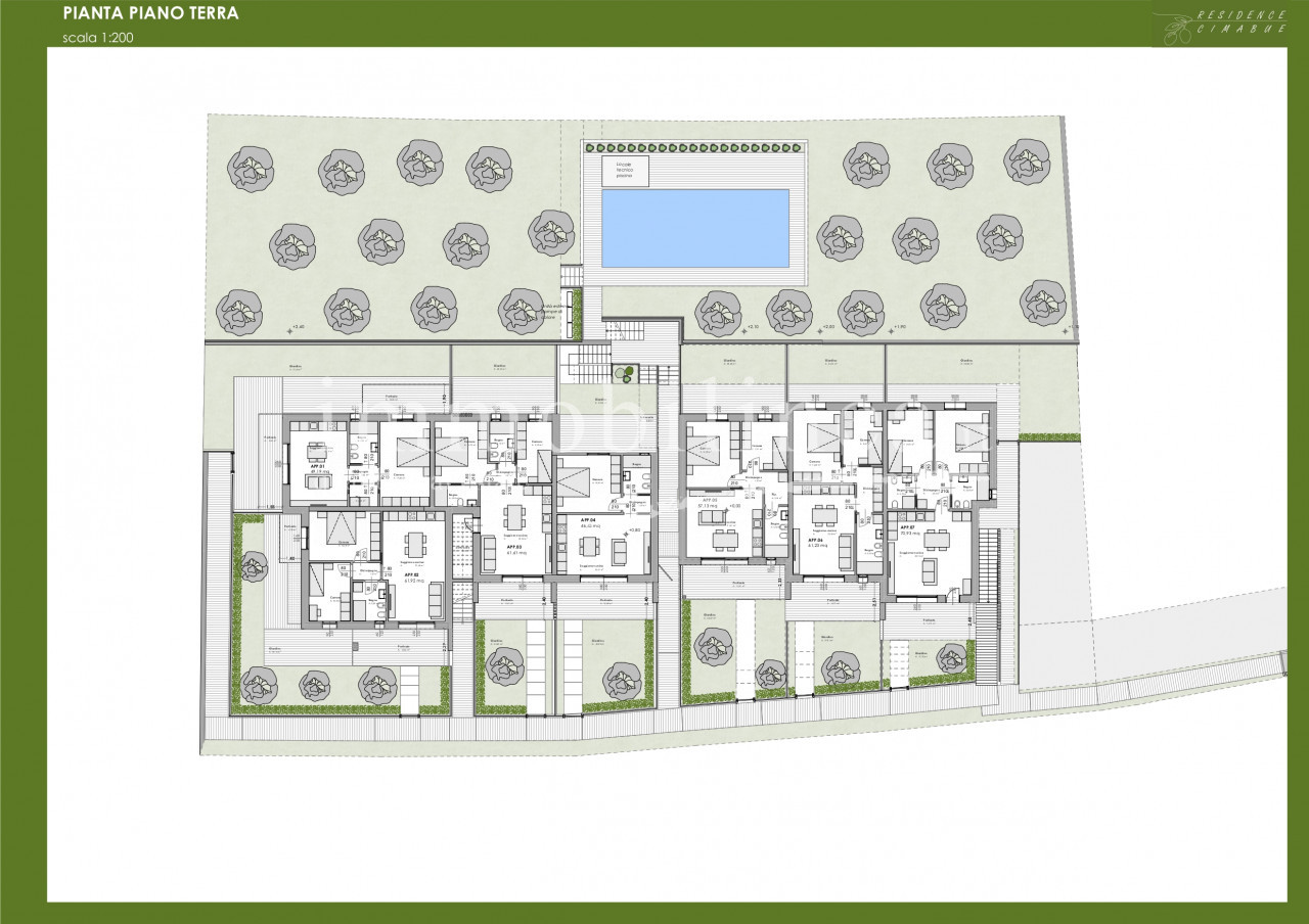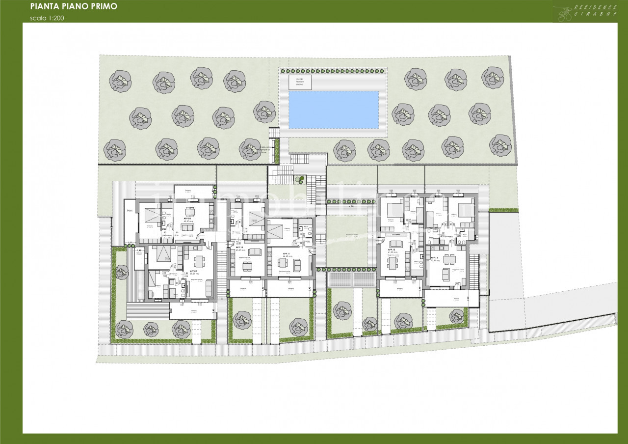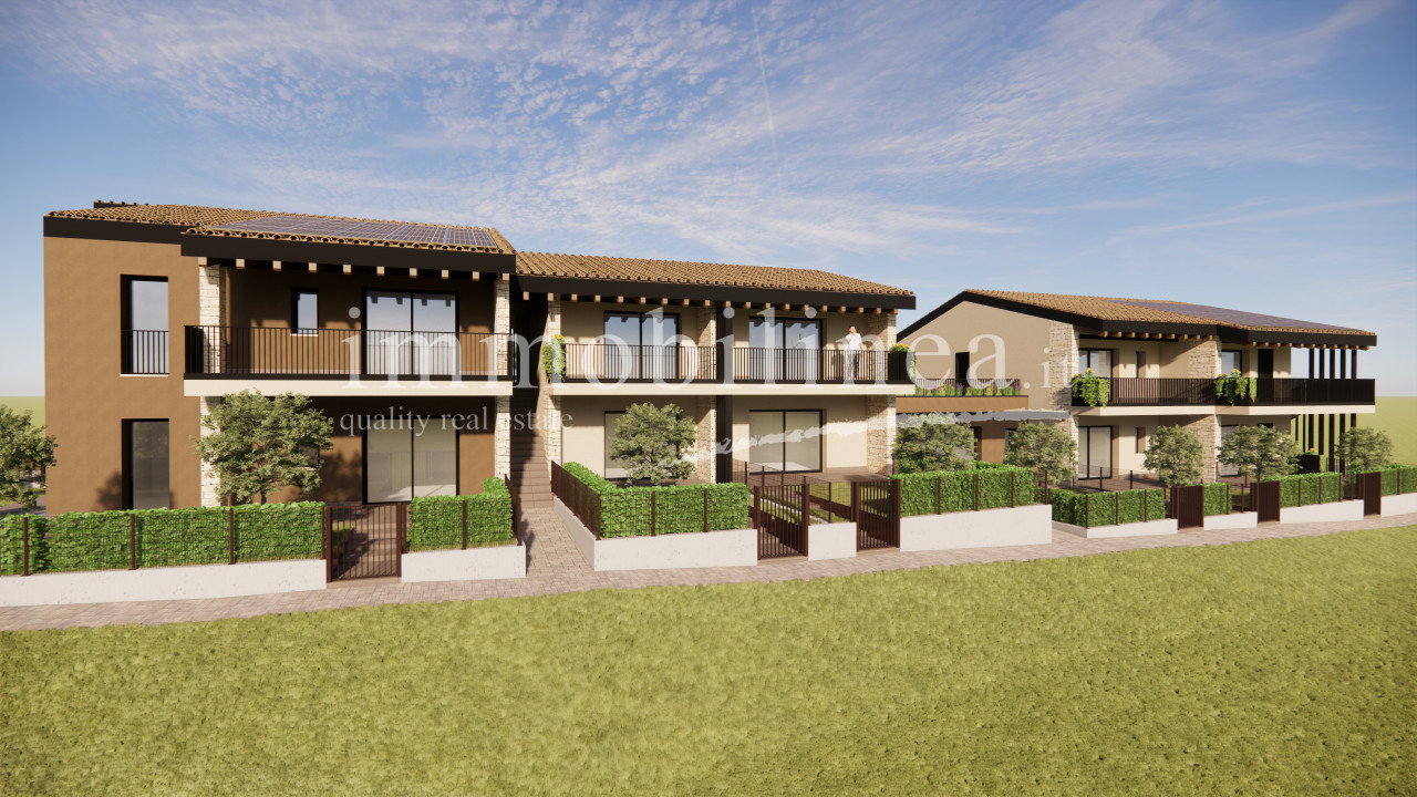 GARDA - Immobilinea is pleased to exclusively present the new Residence Cimabue! It will be located in a very close, elevated and tranquil position to the center, characterized by pleasant aesthetics and surrounded by greenery. The residence will consist of thirteen elegant apartments arranged on the ground floor or first floor. Eight three-room solutions will be available, featuring two bedrooms; five on the ground floor with private gardens and three on the first floor with spacious livable terraces. The complex, equipped with a beautiful communal swimming pool, will be built in Class A fully respecting environmental regulations and current standards, with all apartments designed thoughtfully regarding space and detail. They will be constructed using state-of-the-art building criteria while allowing buyers to choose their own finishes according to individual ideas. All units will come with garages in the basement, some of which are double-sized. High-quality construction combined with an exceptionally advantageous location!