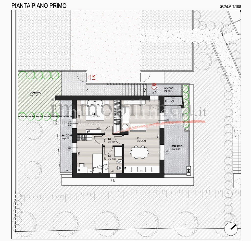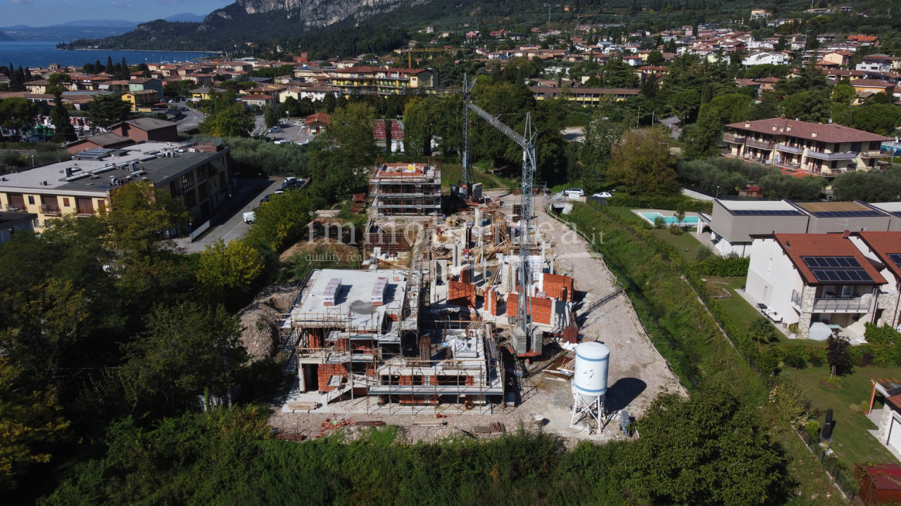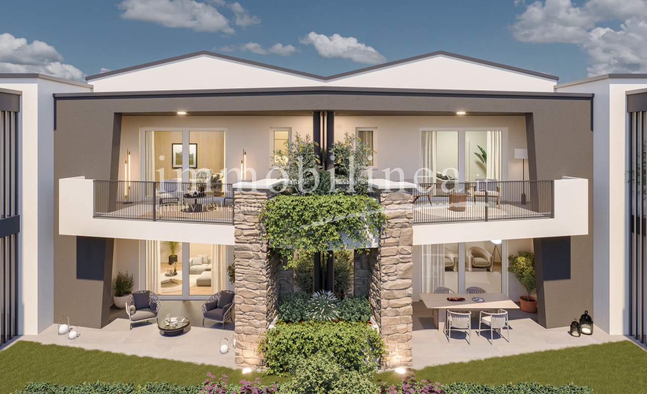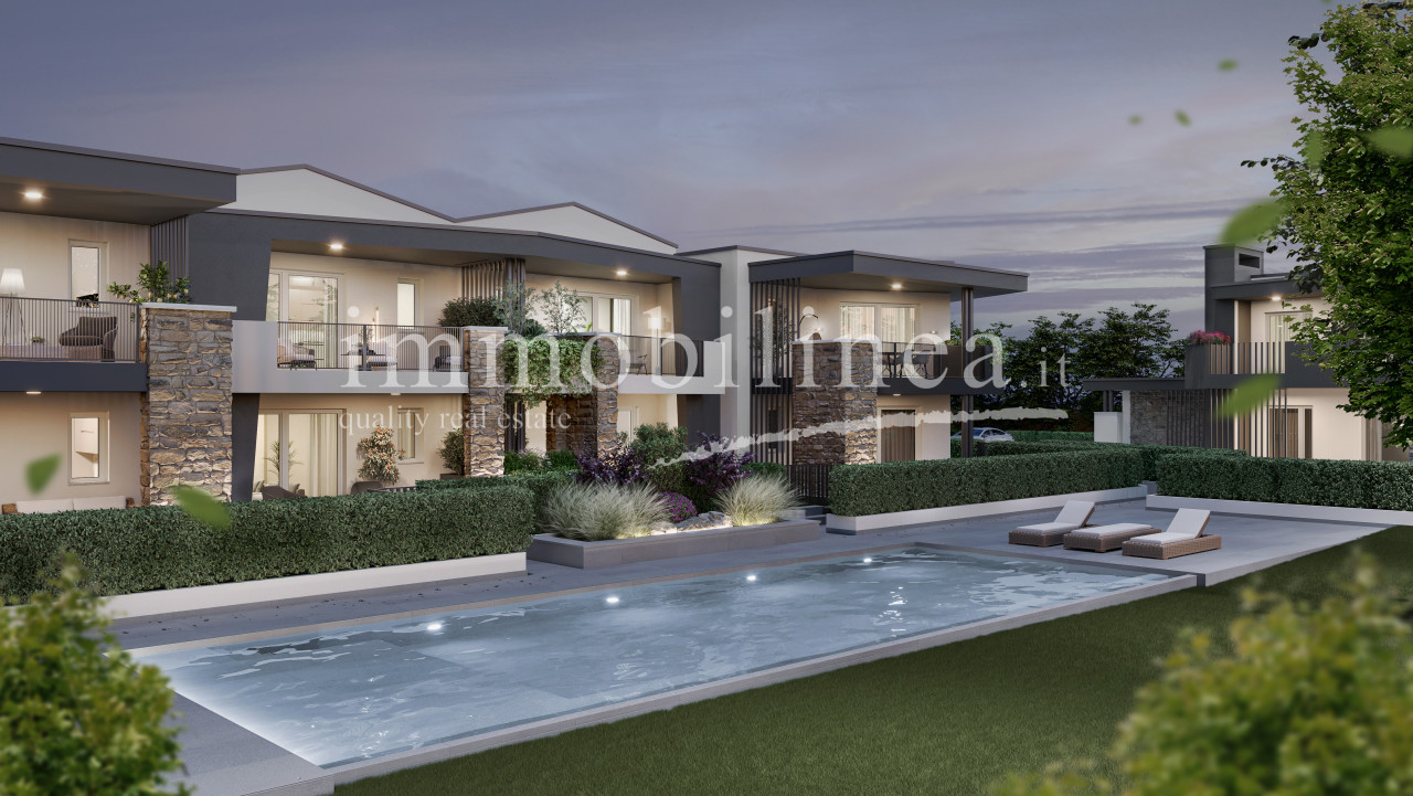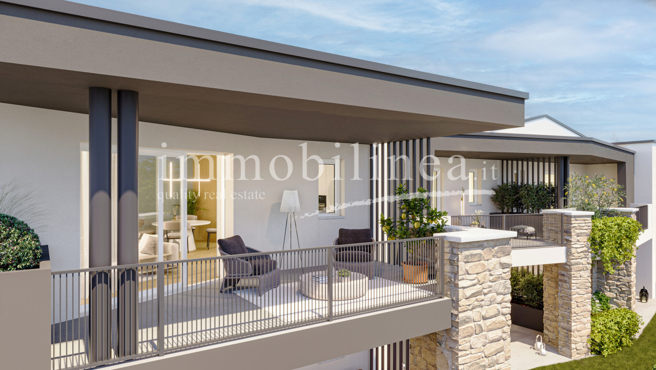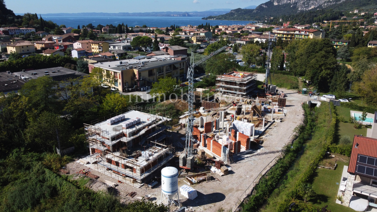 GARDA - In the brand new Residence Sole, soon to be built just 600 meters from the center and featuring a beautiful communal pool, we present this interesting customizable penthouse! The apartment, located on the first and top floor, consists of a small exclusive garden at the foot of the independent entrance, a bright living area with an open kitchen, a large terrace, two bedrooms, and a windowed bathroom. Designed with care and attention to space and details according to state-of-the-art construction criteria, the building will be constructed in energy class A4 in full compliance with environmental standards and current regulations. It represents an unmissable opportunity to live Garda in an exclusive solution that is also an excellent investment for the future!