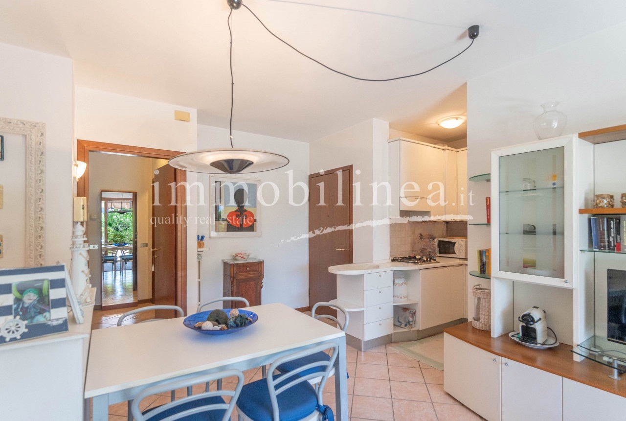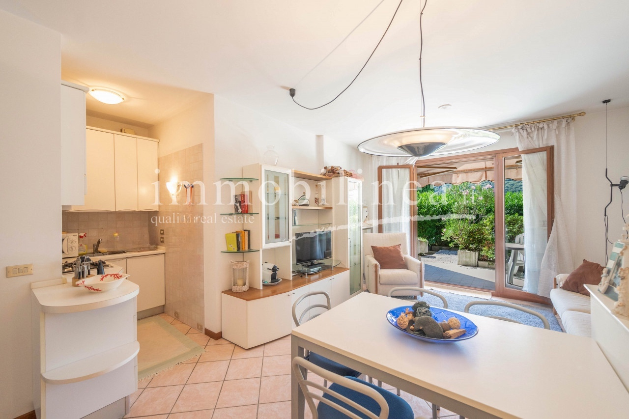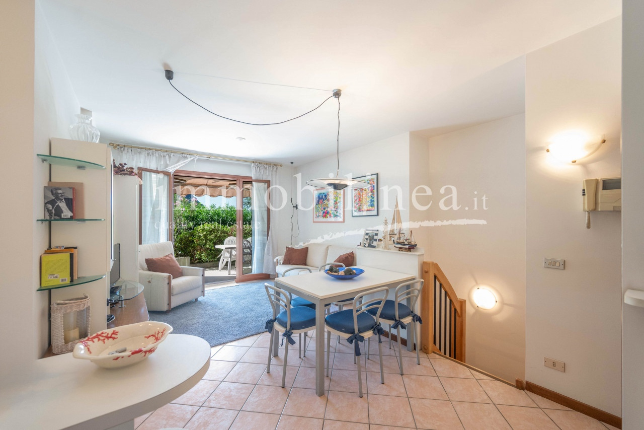 Discover this charming three-room apartment located on the ground floor of a quiet residence of only eight units, just 500 meters from the center of Garda. With an area of 90 sqm, the property offers excellent distribution of indoor spaces and an exclusive terrace perfect for enjoying the Mediterranean climate. The apartment features a bright living room that opens onto the private terrace, ideal for outdoor dining or moments of relaxation. A functional and well-equipped kitchenette is included, while the two bedrooms provide comfort and tranquility. An elegant bathroom completes the living area.
