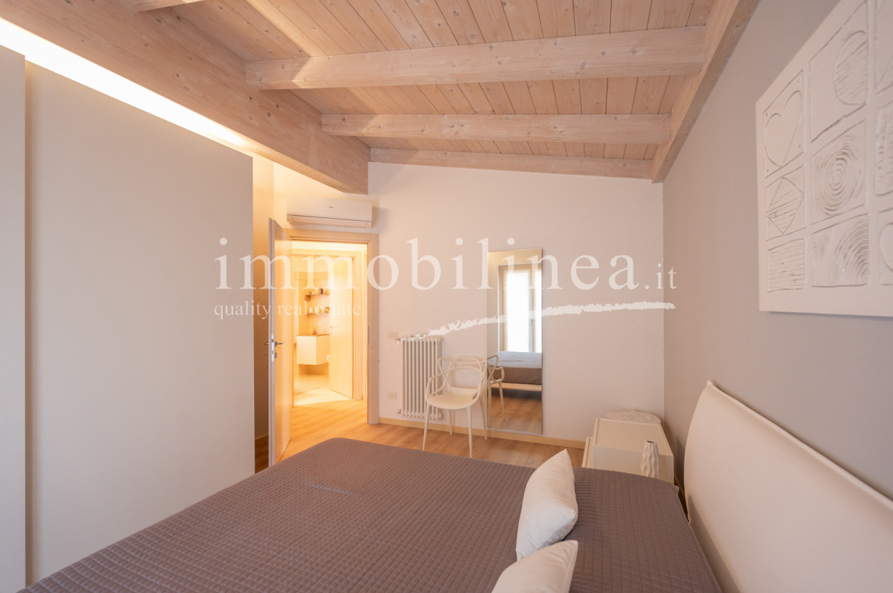 La cocina contemporánea completamente equipada dispone de los más modernos electrodomésticos integrados, mientras que los suelos claros aportan aún más luz a los interiores creando una atmósfera acogedora y luminosa. Las dos habitaciones, también amuebladas a medida con objetos de diseño, son espaciosas y silenciosas; el baño presenta acabados cuidados del gusto actual. Cada complemento decorativo ha sido hecho a medida, nada queda al azar.