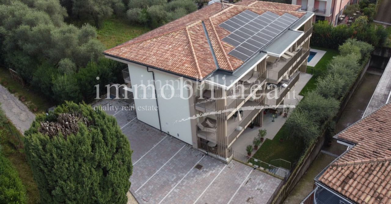 The strategic location allows easy access to the shores of Lake Garda, typical restaurants, shops, and all local attractions without sacrificing tranquility offered by the residential area surrounded by greenery from olive groves.