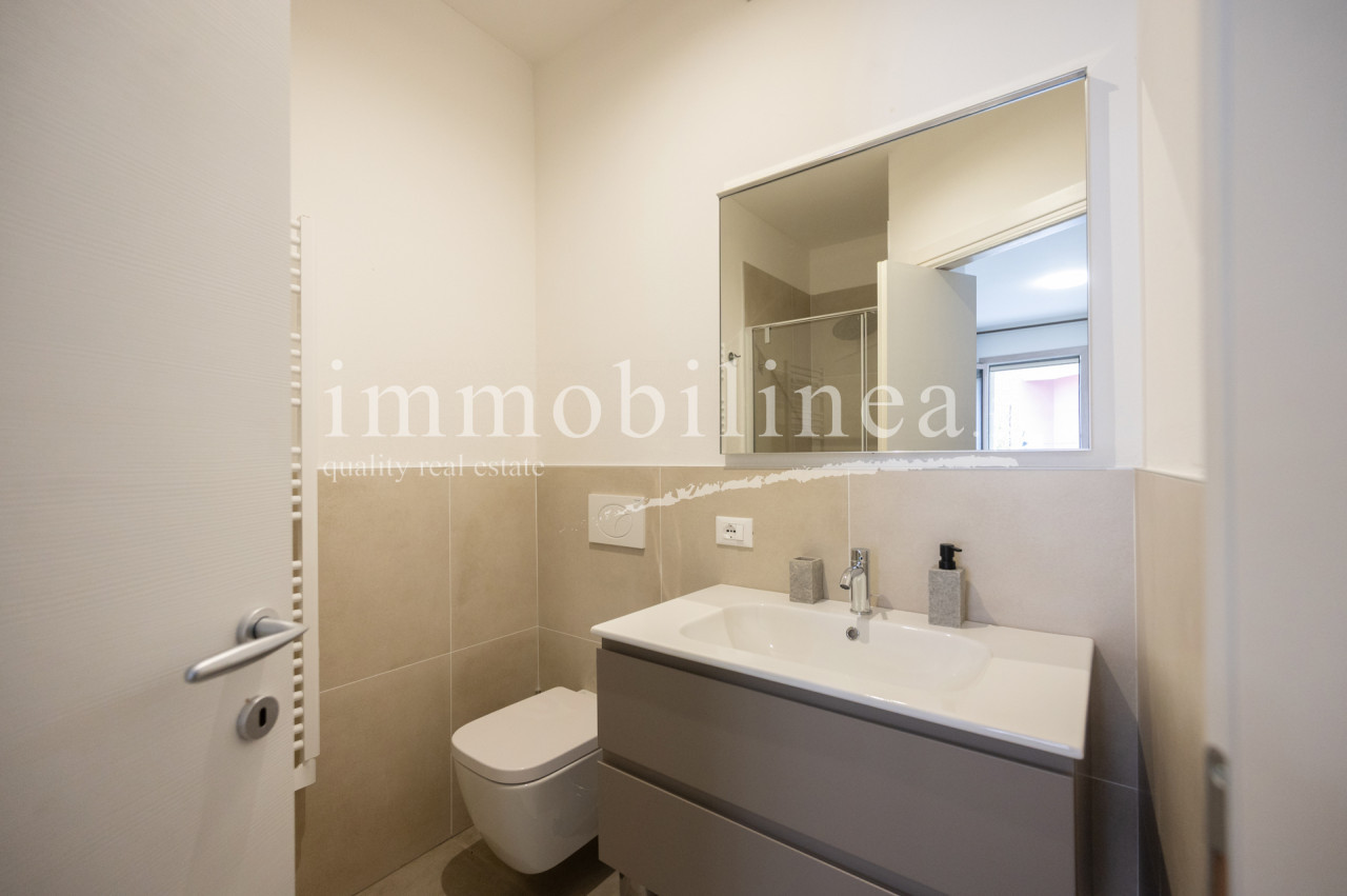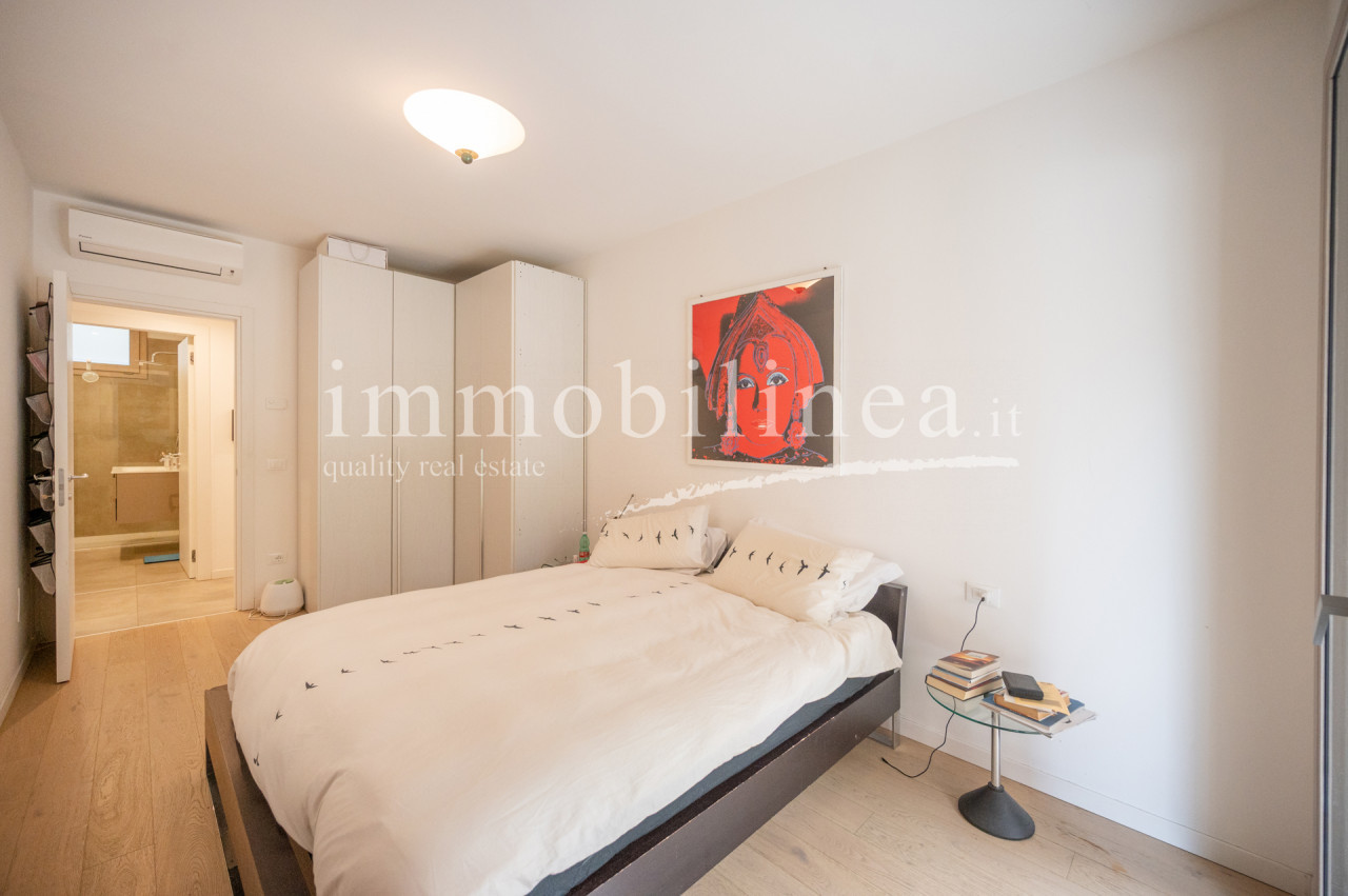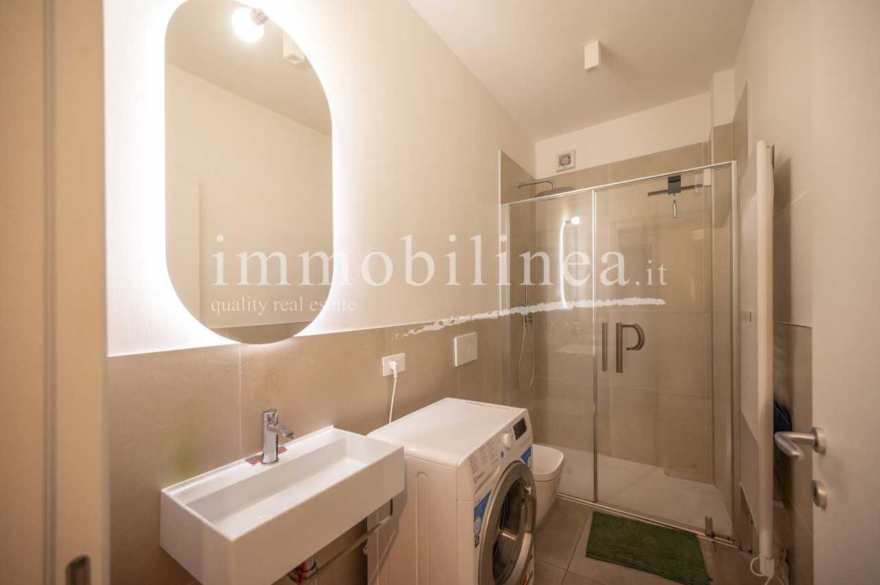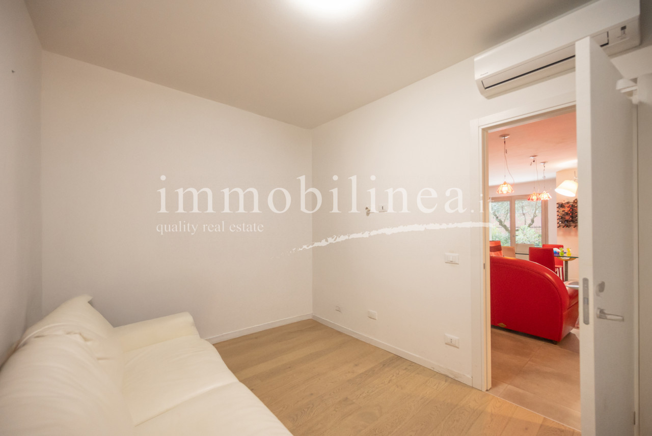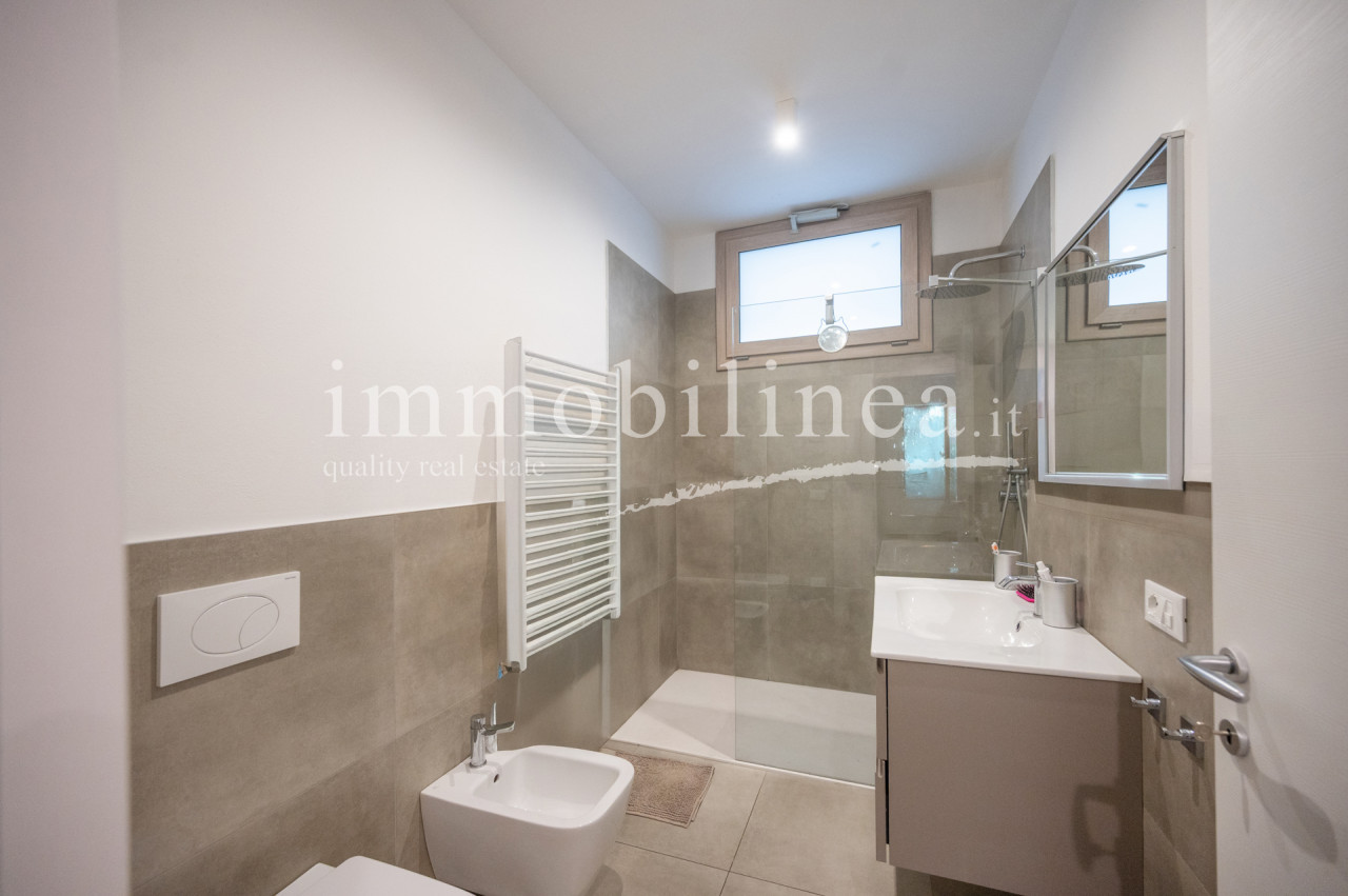 The apartment offers 85 square meters of living space and comprises three spacious bedrooms, three modern bathrooms, a large living room with kitchenette that opens onto a beautiful covered porch and perfectly maintained private garden. The energy class A4 ensures maximum savings thanks to the photovoltaic panels installed on the roof of the building.