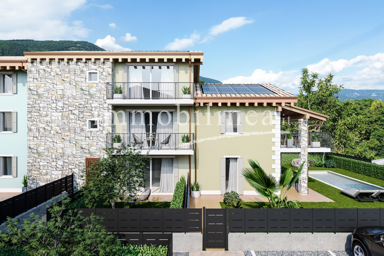 We offer for sale a splendid newly built terraced house located in the renowned area of Albarè, in the municipality of Costermano sul Garda. The property is part of an exclusive residential complex immersed in greenery and surrounded by the morainic hills of Lake Garda.