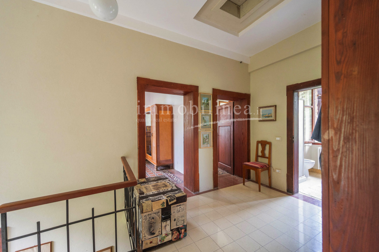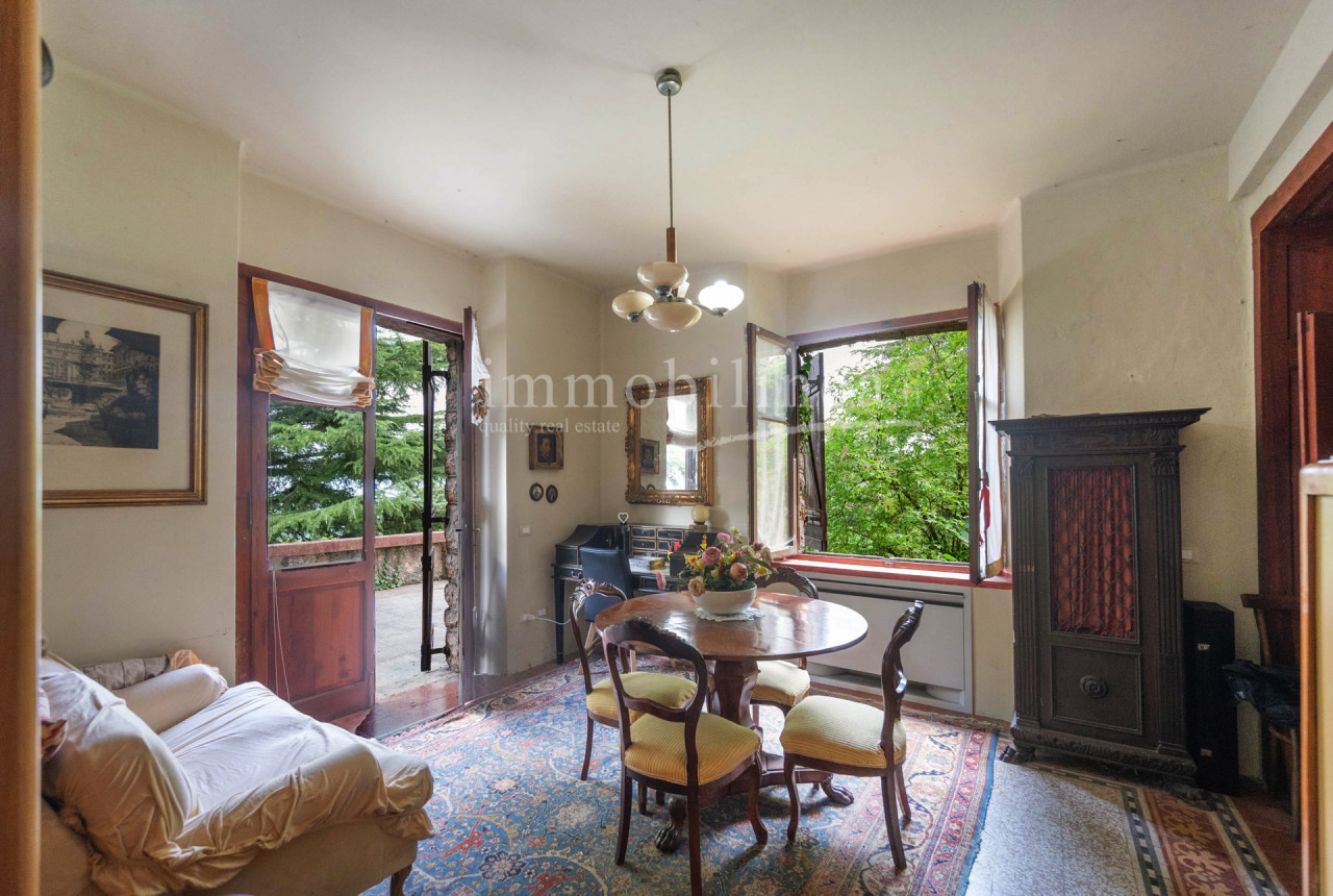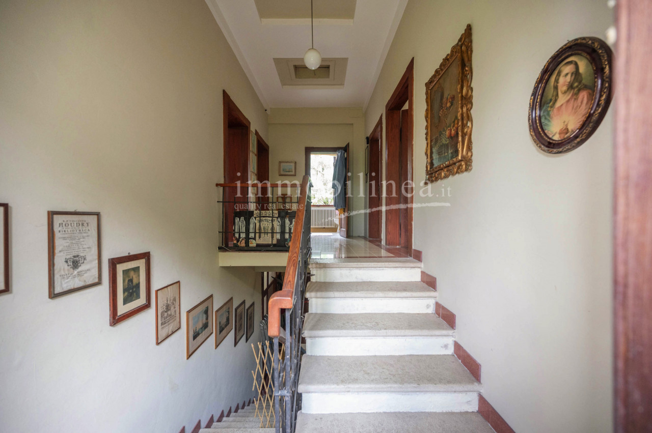 Proponiamo in zona centrale Villa Indipendente dalla metratura generosa suddivisa su più livelli circondata da un maestoso giardino di circa 3500 mq all'interno del quale si trovano alberi ad alto fusto della stessa età dell'immobile che garantiscono una sensazione di naturalezza e ottima privacy. Tutti gli spazi sono di dimensioni generose, caratterizzati da infissi di grandi dimensioni che permettono un alto livello di luminosità e capacità di rinfrescare gli ambienti in maniera naturale. Al piano interrato una cantina spaziosa dalla quale si può accedere tramite una scala interna direttamente alla zona giorno al piano terra, qui troviamo una cucina luminosa corredata da camino funzionante, un locale di disimpegno ed un bagno oltre al living che affaccia direttamente su una terrazza in direzione Lago di oltre 40 mq. Salendo poi al piano primo ci sono quattro generose camere da letto, delle quali la patronale con balcone privato da dove si può apprezzare la vista del golfo di Salò ed in fine il mansardato anch'esso munito di terrazzino panoramico.