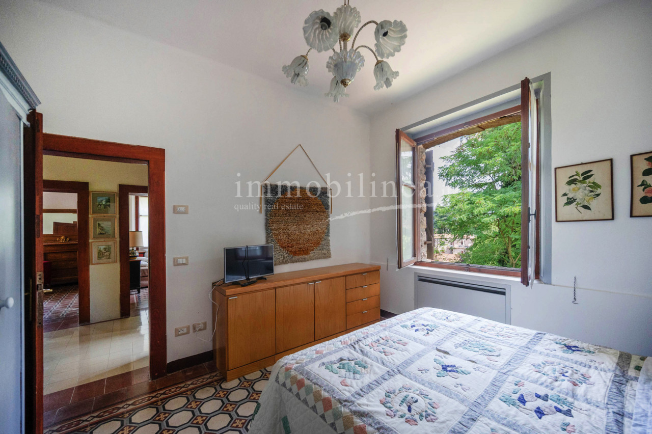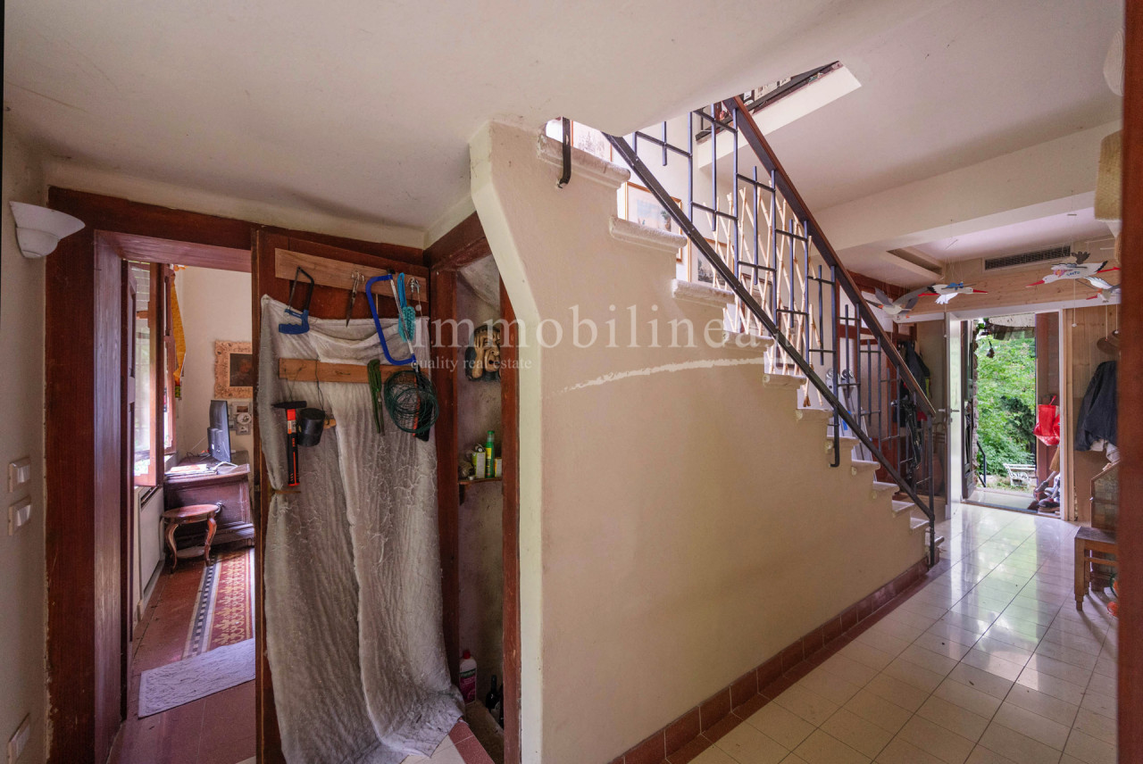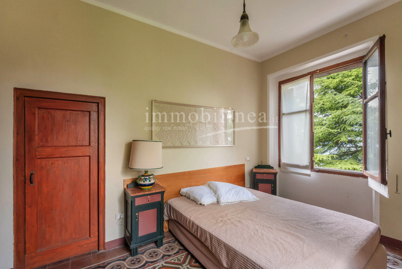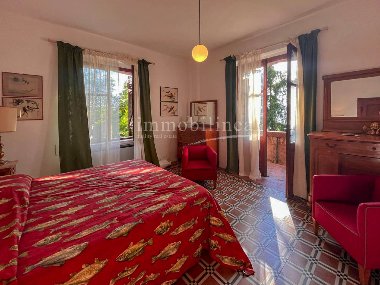 Proponiamo in zona centrale Villa Indipendente dalla metratura generosa suddivisa su più livelli circondata da un maestoso giardino di circa 3500 mq all'interno del quale si trovano alberi ad alto fusto della stessa età dell'immobile che garantiscono una sensazione di naturalezza e ottima privacy. Tutti gli spazi sono di dimensioni generose, caratterizzati da infissi di grandi dimensioni che permettono un alto livello di luminosità e capacità di rinfrescare gli ambienti in maniera naturale. Al piano interrato una cantina spaziosa dalla quale si può accedere tramite una scala interna direttamente alla zona giorno al piano terra, qui troviamo una cucina luminosa corredata da camino funzionante, un locale di disimpegno ed un bagno oltre al living che affaccia direttamente su una terrazza in direzione Lago di oltre 40 mq. Salendo poi al piano primo ci sono quattro generose camere da letto, delle quali la patronale con balcone privato da dove si può apprezzare la vista del golfo di Salò ed in fine il mansardato anch'esso munito di terrazzino panoramico.