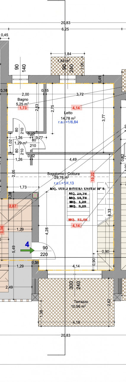 Al primo piano troviamo ingresso su ampia zona giorno con cucina e terrazza, una camera matrimoniale con balcone e un bagno finestrato. Al piano secondo invece ampia stanza di circa 46 mq con ulteriore terrazzo.
